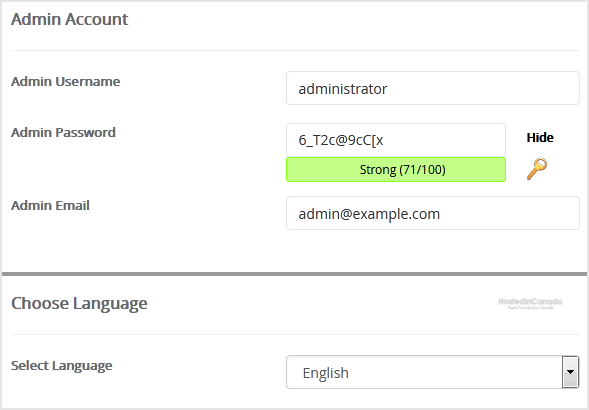 • Admin Username: Your new CMS Made Simple username (for security reason do not use the Administrator or the Admin username.)