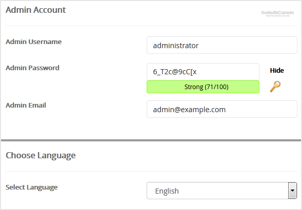 • Admin Username: Your new Website Baker username (for security reason do not use the Administrator or the Admin username.)