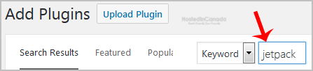 3. In the Search Plugin box, enter the name of the plugin you wish to install, such as Jetpack, and press enter.