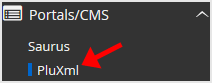 4. On the left side of your screen, you should locate the Portal/CMS category. Click on it and then click on the PluXml link that will appear.